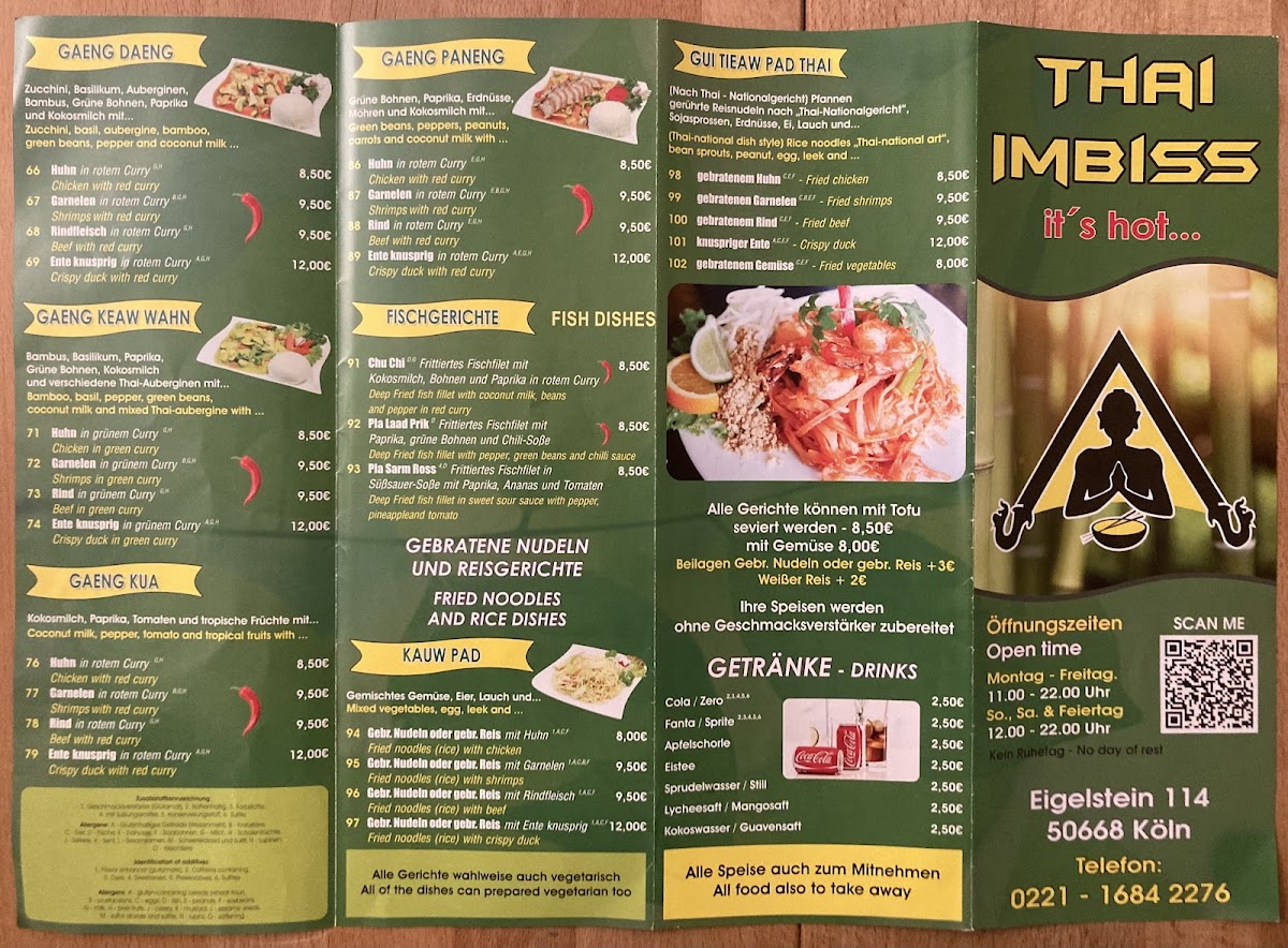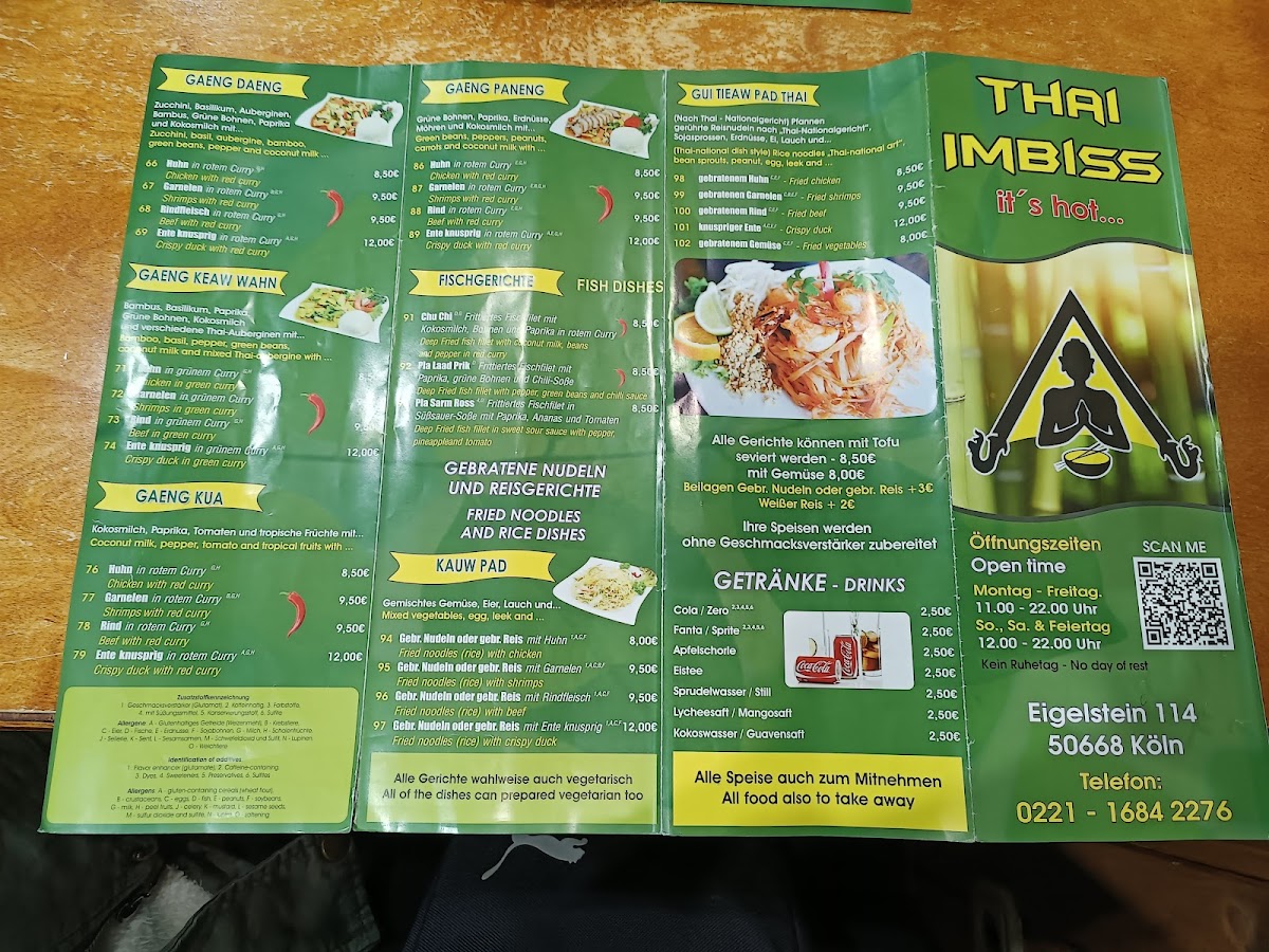 Welcome to Thai Imbiss, an inviting spot located at Eigelstein 114, Köln, where Thai cuisine meets local flair. Our menu offers a delightful mix of traditional and adapted Thai dishes. While some may argue it strays from authentic recipes, many guests appreciate the unique German touch—think red curry stir fry infused with local spices and Tom Yum featuring unexpected yet tasty ingredients like canned pineapple.